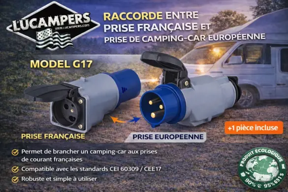 Lucampers -Adaptateur compact sans câble Femelle 16A 2P+T en Mâle CEE17 pour CAMPING, NAUTISME?