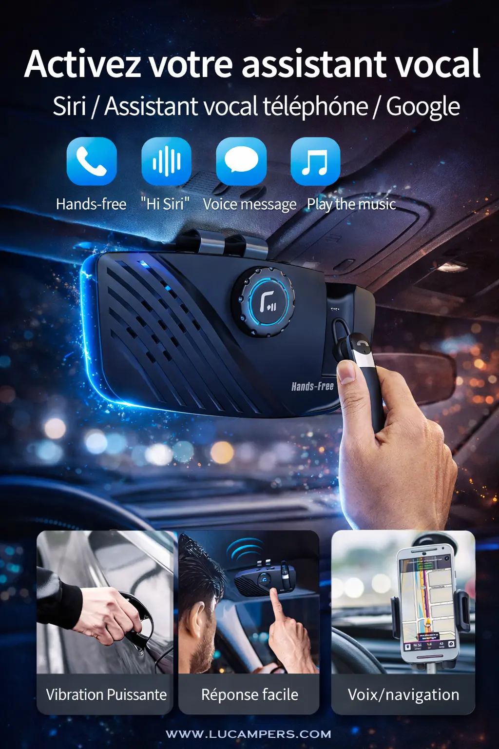 - Haut-parleur de voiture professionnel mains libres, BT V5.0