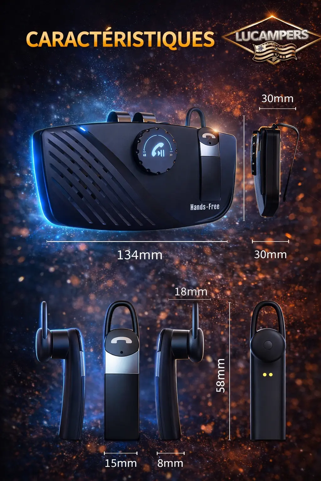 Kit mains-libres nomade pour camping car à fixer sur pare-soleil