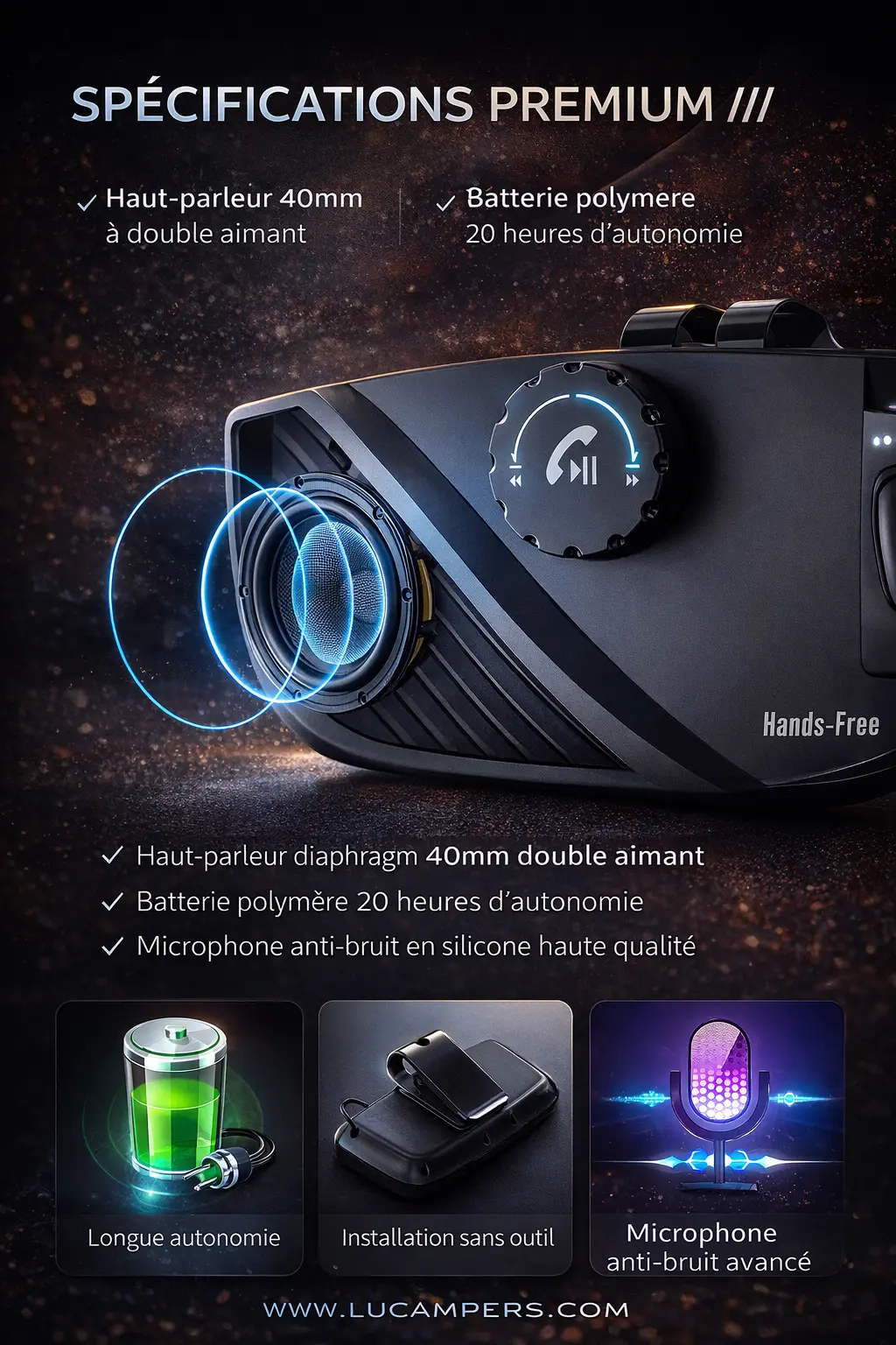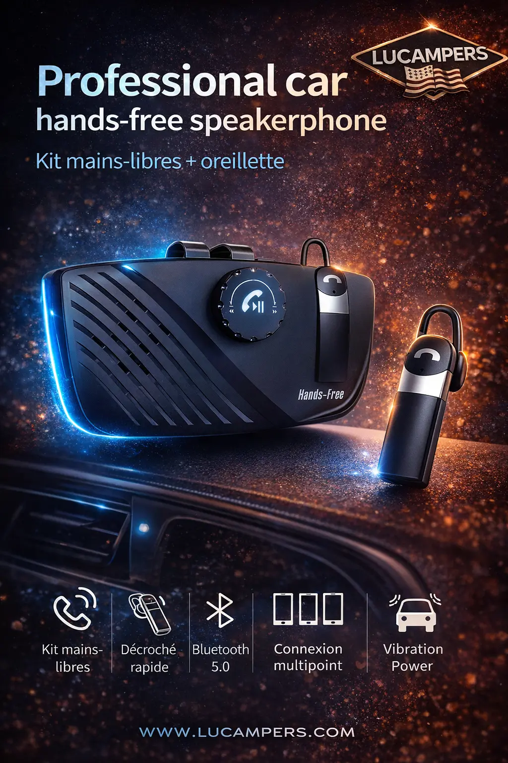 - Haut-parleur de voiture professionnel mains libres, BT V5.0