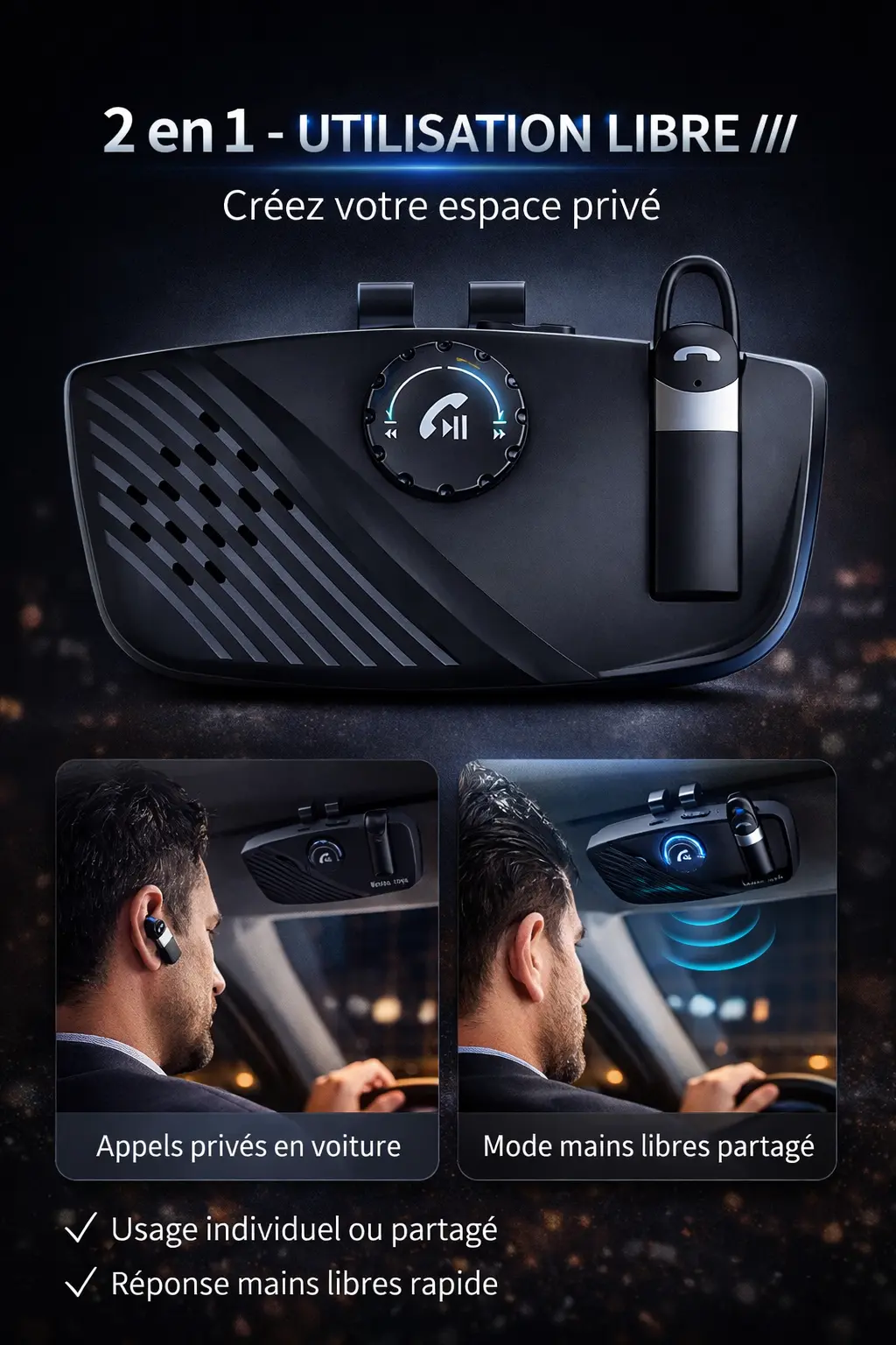 - 2 en 1 mains libres + écouteur